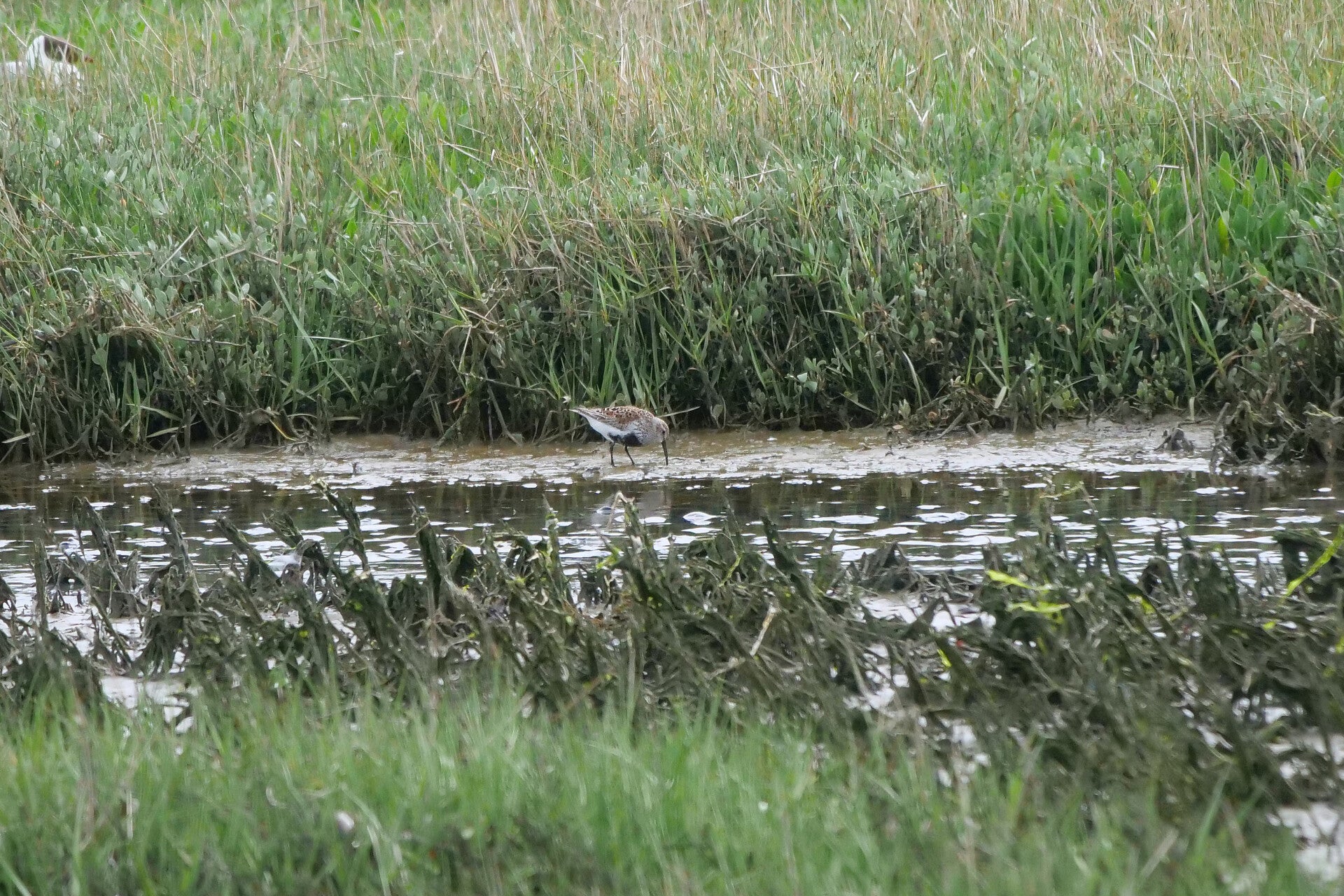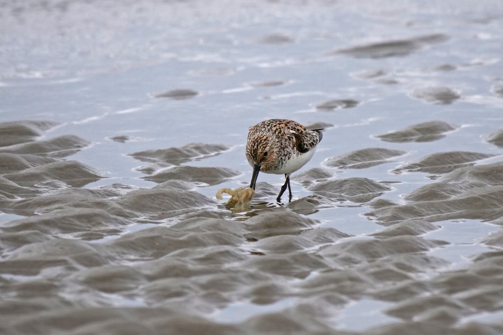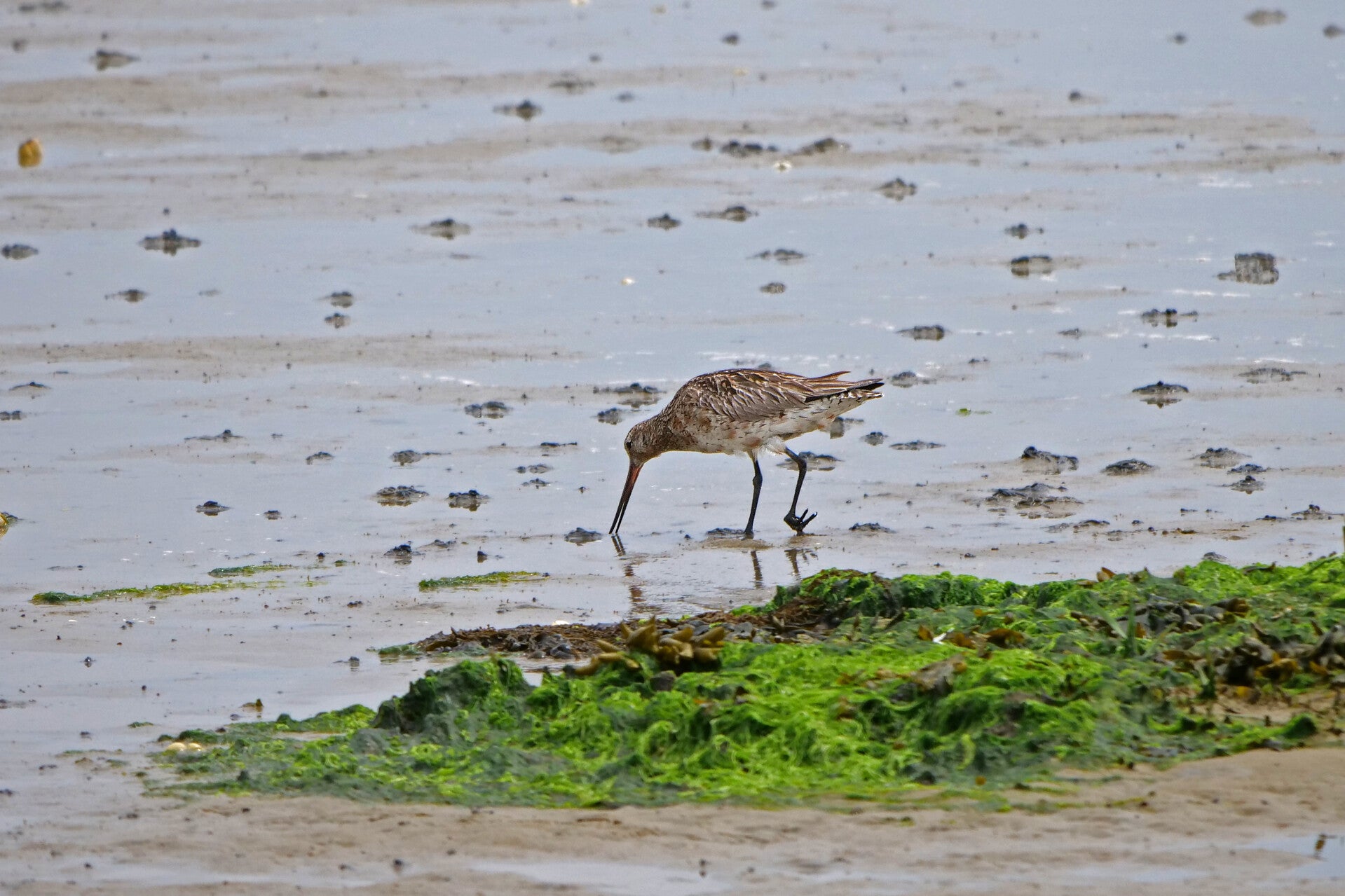 Er zit alleen een groepje meeuwen en Rosse Grutto's.