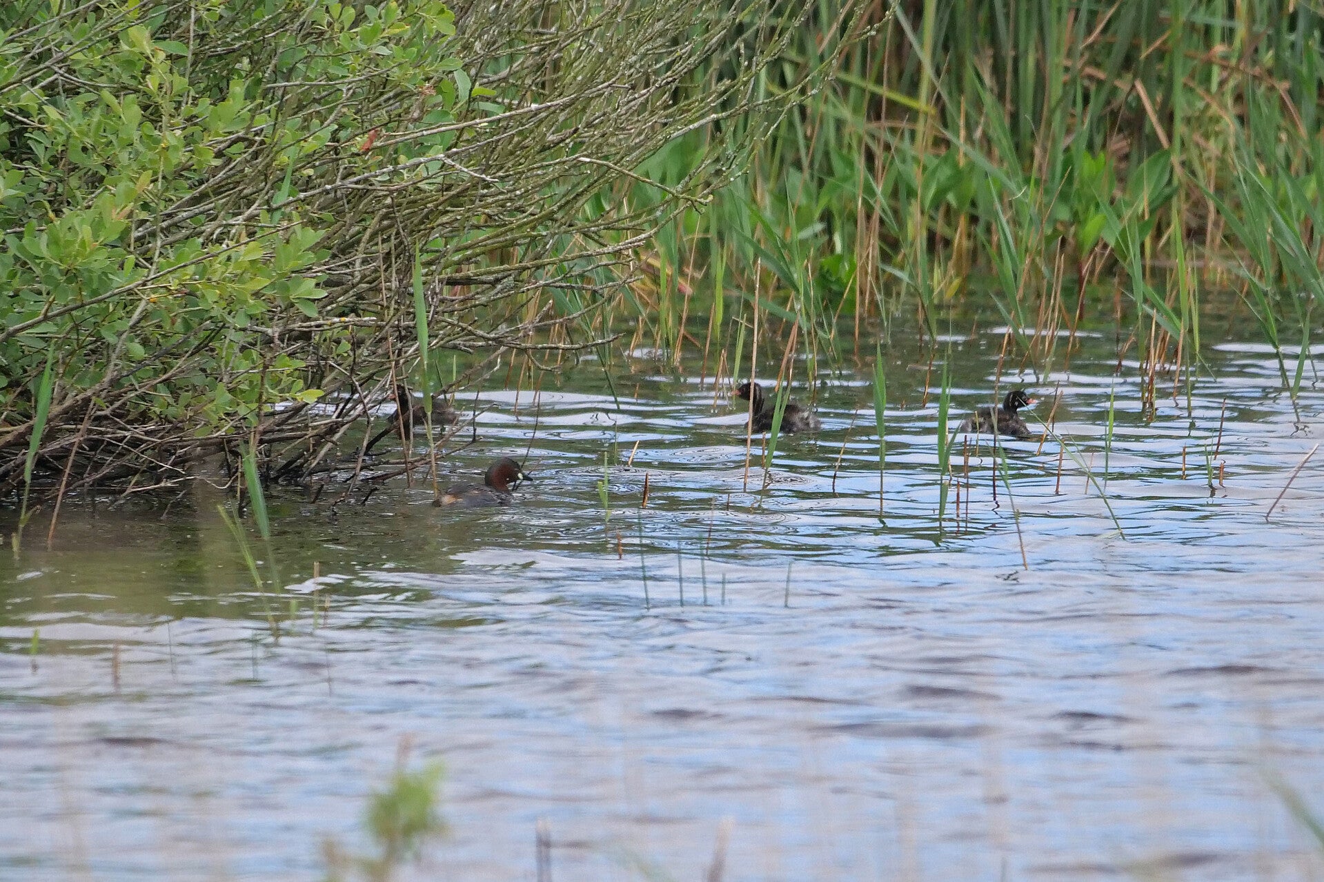 Rietgors ♂ met insectjes