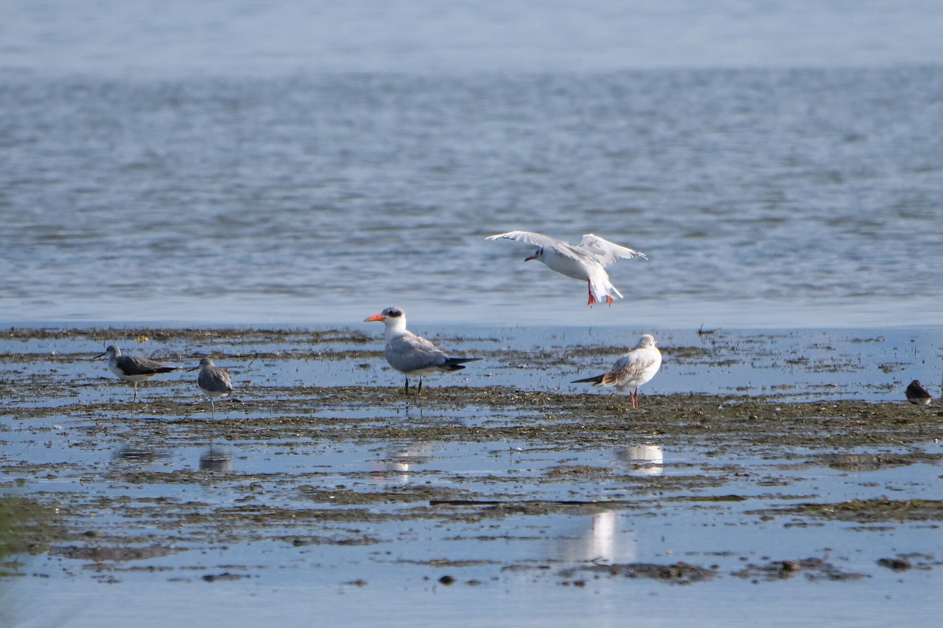 Ralreiger wordt weggejaagd door Kleine Zilverreiger, Spanje